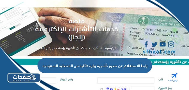 رابط الاستعلام عن صدور تأشيرة زيارة عائلية من القنصلية السعودية الذي أتاحته وزارة الخارجية السعودية عبر منصة التأشيرات التي تهتم بتقديم كافة الخدمات الخاصة بالتأشيرات من إصدار ومنح التأشيرة، بالإضافة إلى الاستعلام عنها، لذا يهتم موقع صفحات بطرح رابط الاستعلام عن صدور تأشيرة زيارة عائلية من القنصلية السعودية.