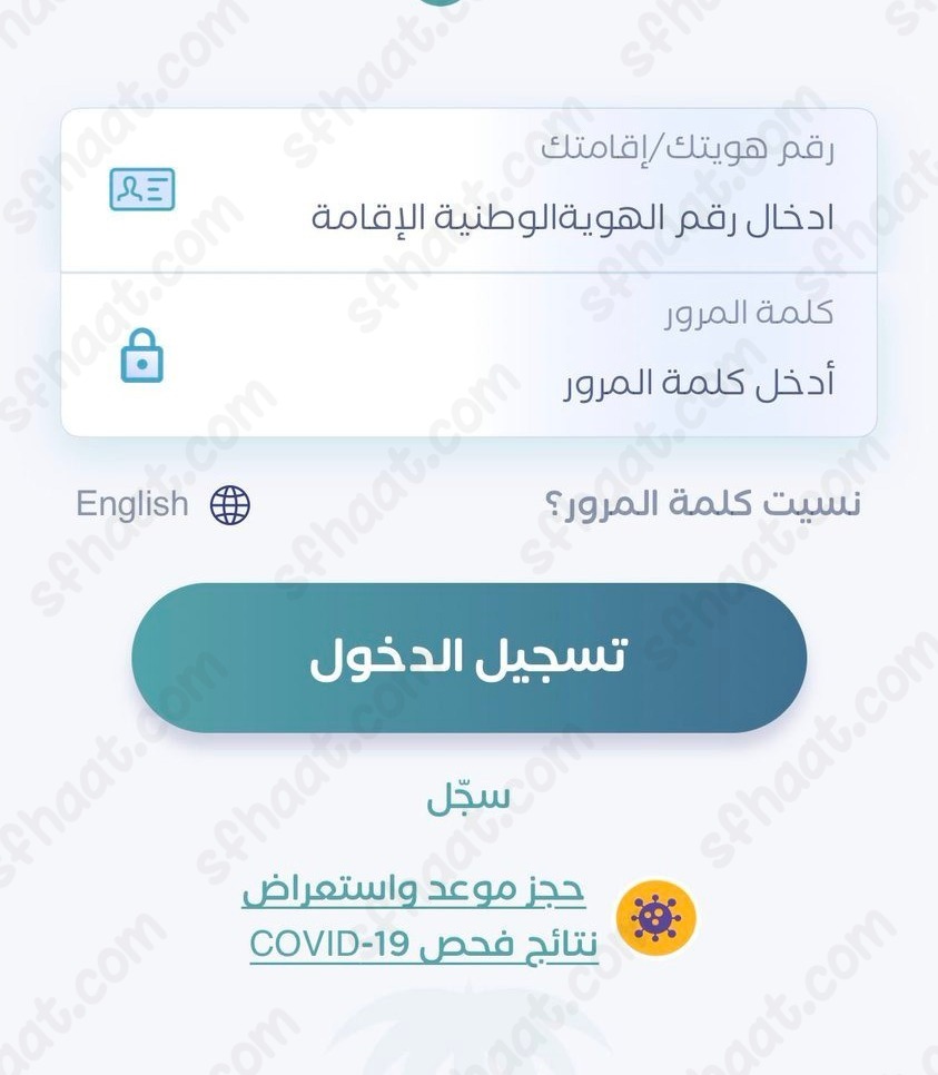- تسجيل الدخول على تطبيق صحتي من خلال تعبئة بيانات المواطن.