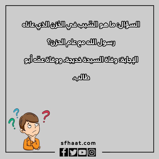 الإجابة: هو خاتم الرسل، ورسول للعالمين عامّة. - السؤال: ما هو السّبب في الحُزن الذي عاناه رسول الله مع عام الحزن؟